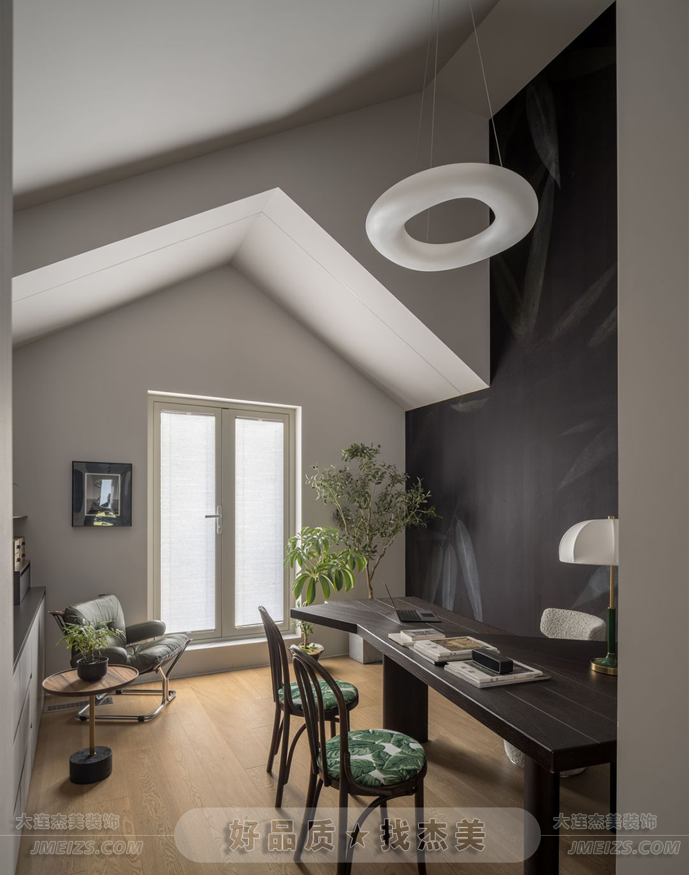 書房的設(shè)計充分考慮了空間的采光問題,頂面結(jié)構(gòu)完全還原了原始的建筑結(jié)構(gòu),以保證充足的自然光。